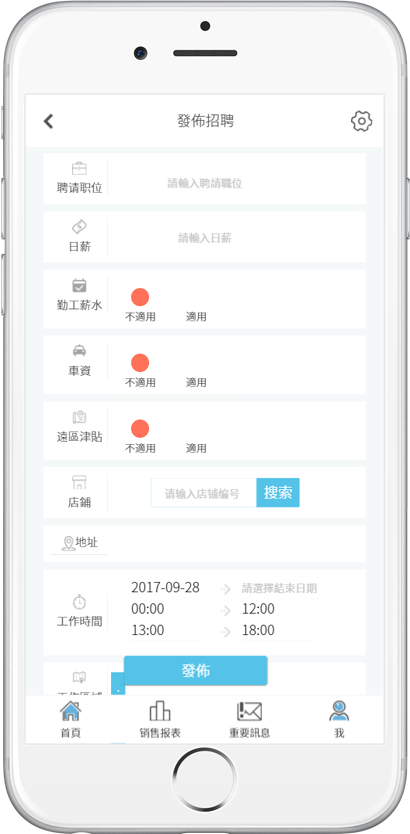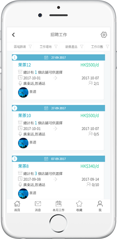 这款APP是使用HTML,CSS,JavaScript等语言编写的WEBAPP,苹果和安卓手机都可以完美兼容,他是一款招聘类APP,分为雇主端和雇员端两个部分,雇主可以发布工作,审查工作进度,给雇员评分等,雇员则是可以选择意向工作地点,选择工作时间,以此筛选适合自己的工作。